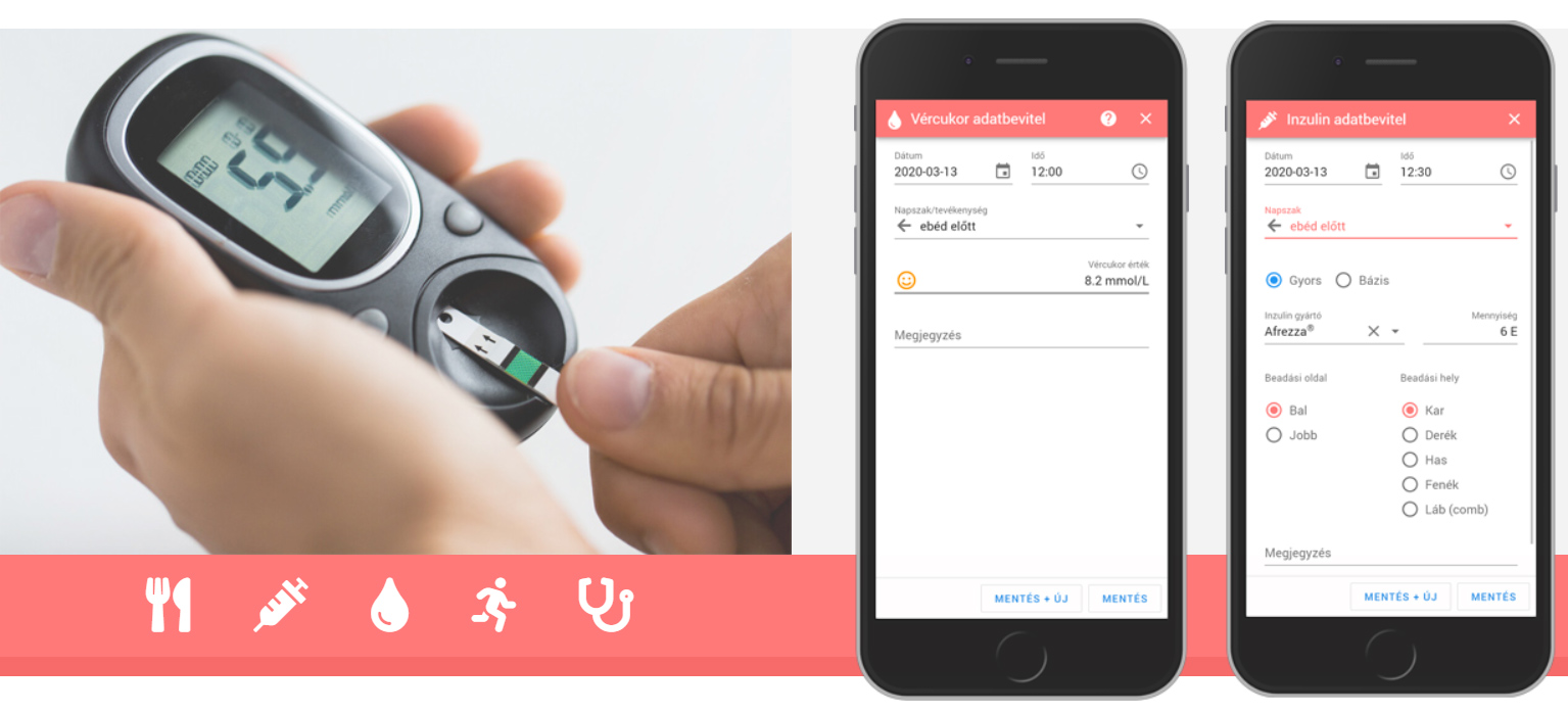 Szerencsére okostelefonunk szinte mindig kéznél van, így egy adott mérésnél, vagy inzulin egység beadásánál rögtön be tudjuk vinni az adatokat, és onnantól ezek bárhol elérhetőek utána, ha rendelkezünk internet eléréssel.